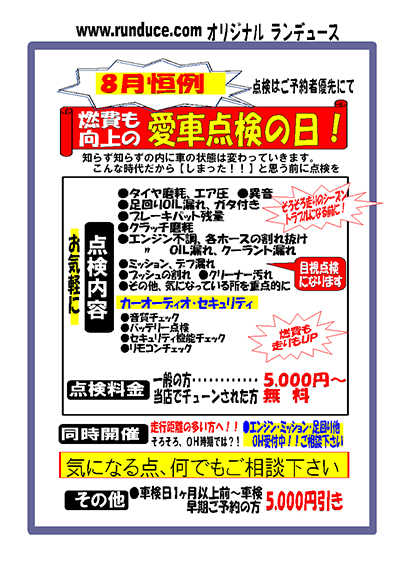 愛車無料点検デー 8/9〜31